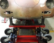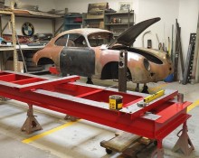 SCR Vintage Blackhawk frame machine that is ready to accommodate two Porsche 356's in queue.